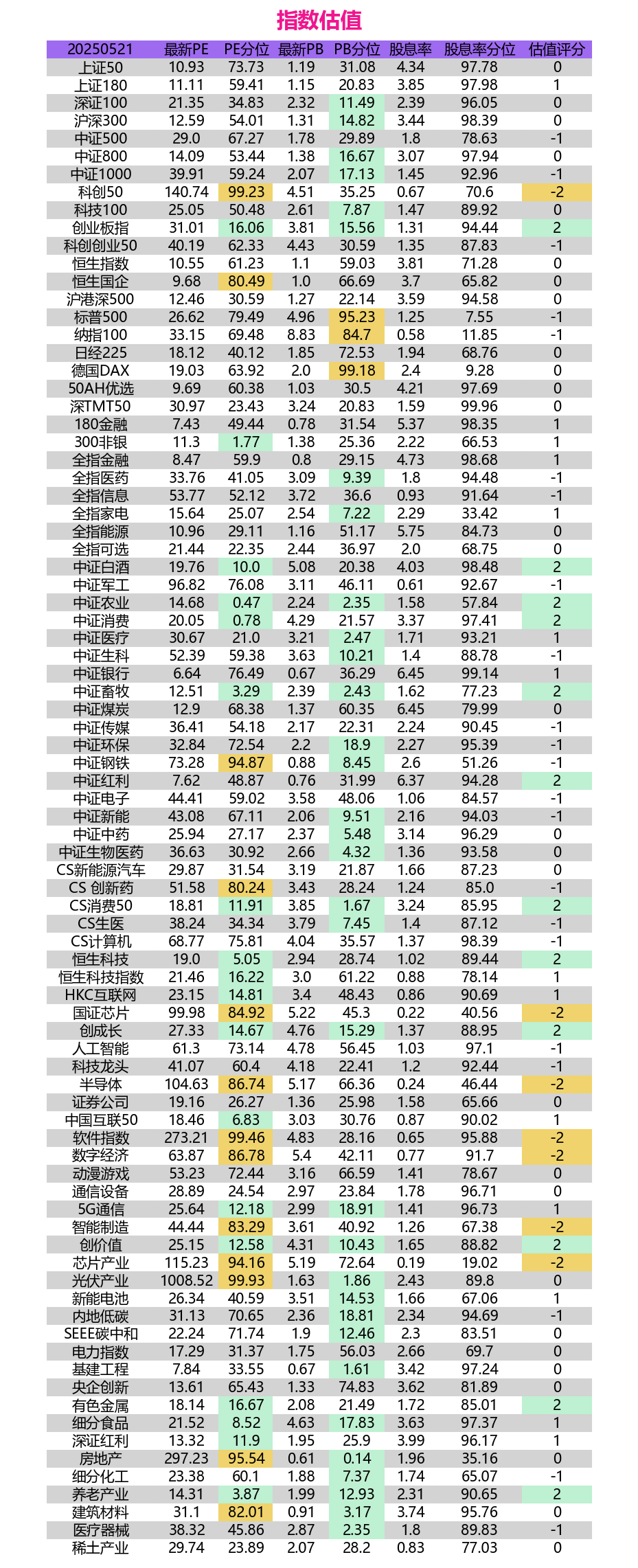 同步公众号-余汉波指数评估:A股中期策略,拥抱结构性机会,警惕潜在风险2025年5月21日,A股市场在多重因素交织下呈现出复杂局面。一方面,主要指数小幅上涨,创业板指表现活跃,另一方面,市场成交额维持高位,显示资金博弈激烈。 财经 估值
